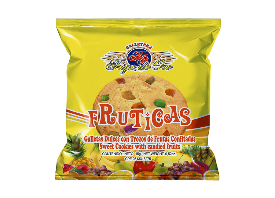 Crujientes y dulces galletas con sabor a frutas, que resaltan la calidad y sabor, obtenido mediante un proceso de alta tecnología y pericia, para así ofrecer alegría a quien lo deguste.